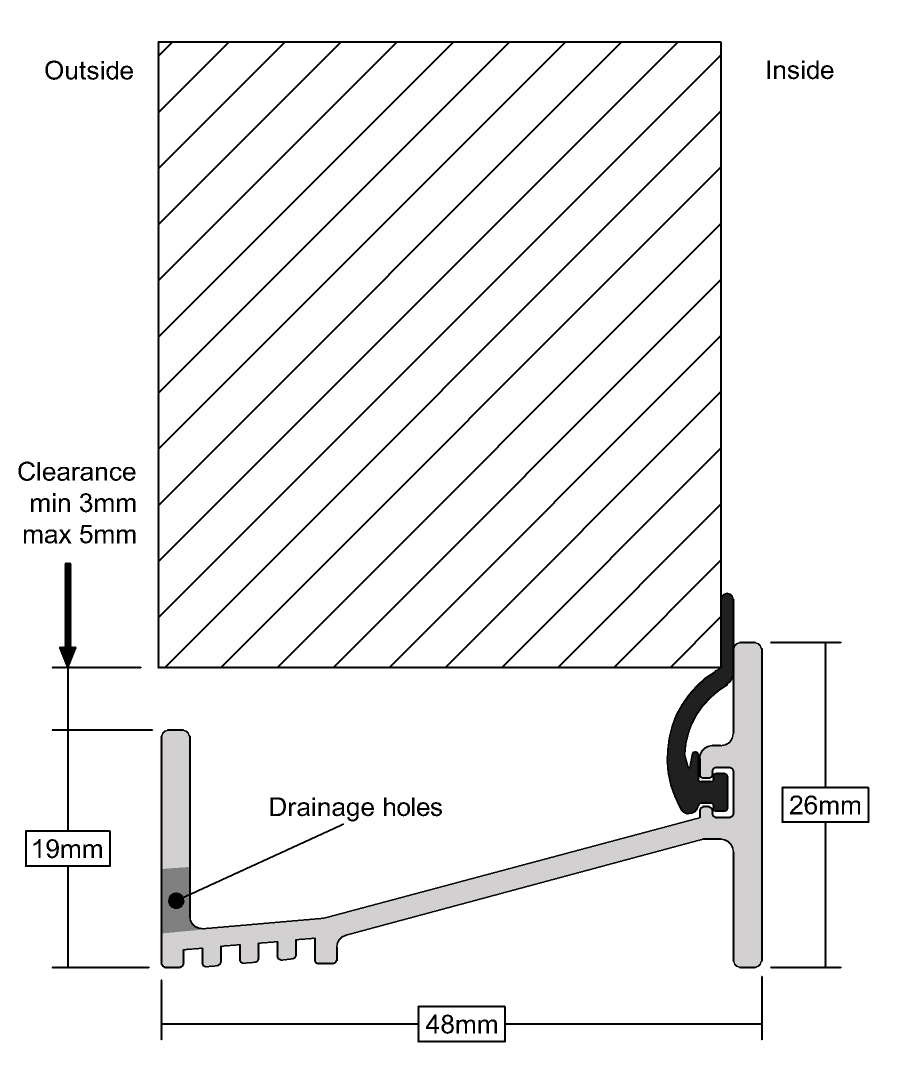 • Pre-drilled drainage and fixing holes