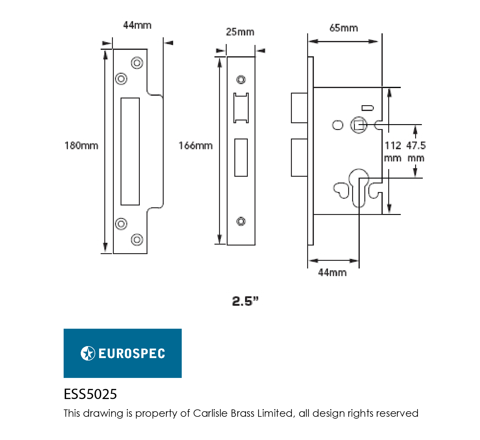 Lock centres: 47.5mm